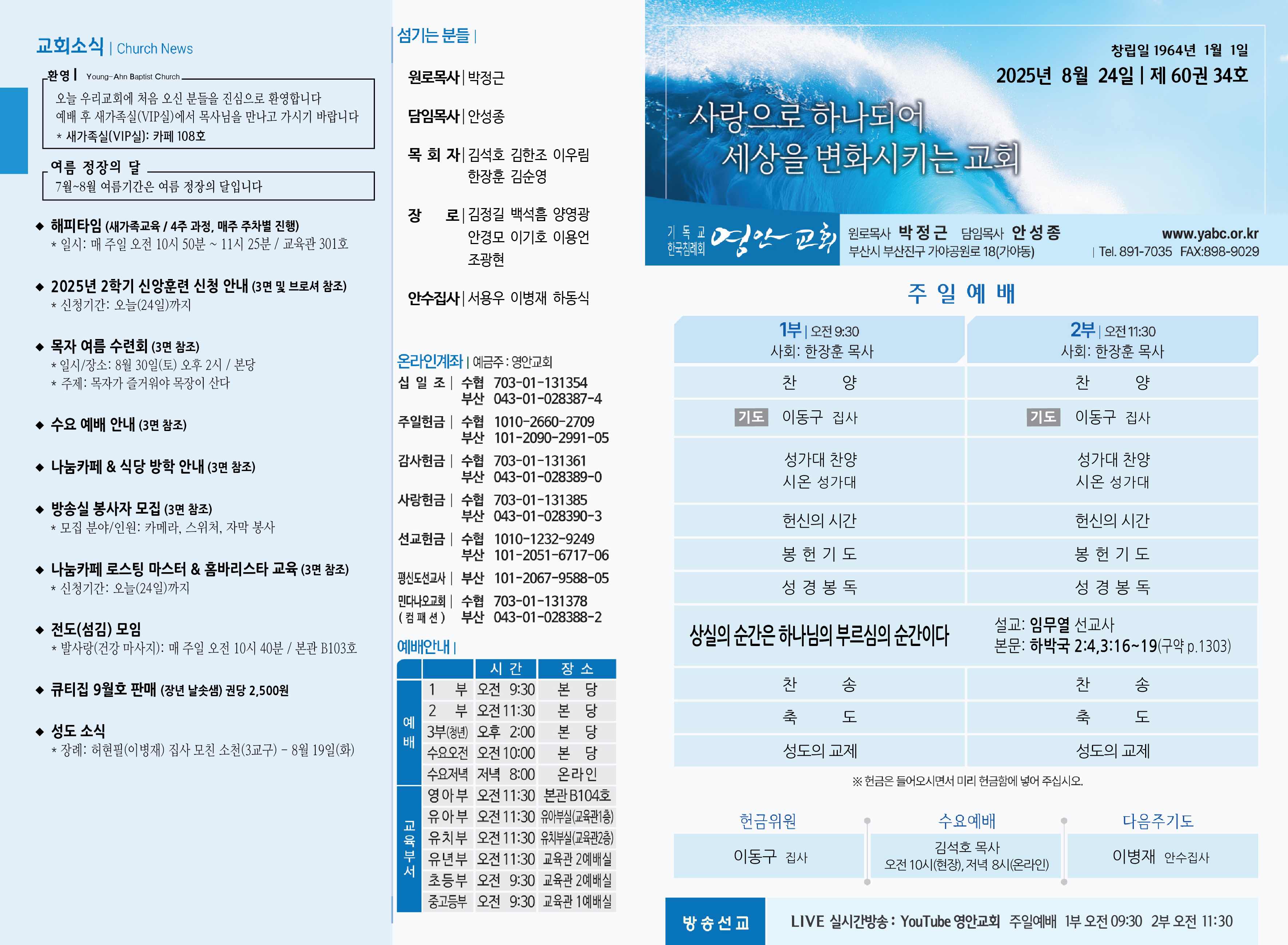 2025년 8월 24일 주보 페이지 정보 작성자 관리지기 작성일25-08-23 10:18 조회1,180회 댓글0건 관련링크 목록 본문 2025년 8월 24일 주보 댓글목록 등록된 댓글이 없습니다. 목록