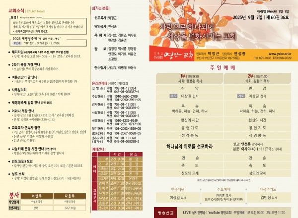 2025년 9월 7일 주보 페이지 정보 작성자 관리지기 작성일25-09-06 10:12 조회1,144회 댓글0건 관련링크 목록 본문 2025년 9월 7일 주보 댓글목록 등록된 댓글이 없습니다. 목록