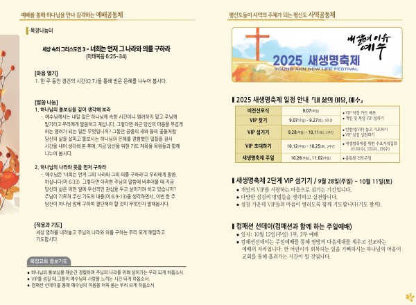2025년 9월 28일 주보 페이지 정보 작성자 관리지기 작성일25-09-27 10:23 조회897회 댓글0건 관련링크 목록 본문 2025년 9월 28일 주보 댓글목록 등록된 댓글이 없습니다. 목록