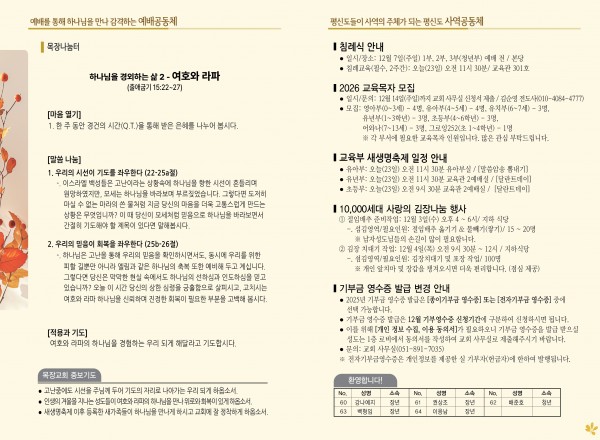 2025년 11월 23일 주보 페이지 정보 작성자 관리지기 작성일25-11-22 10:45 조회602회 댓글0건 관련링크 목록 본문 2025년 11월 23일 주보 댓글목록 등록된 댓글이 없습니다. 목록