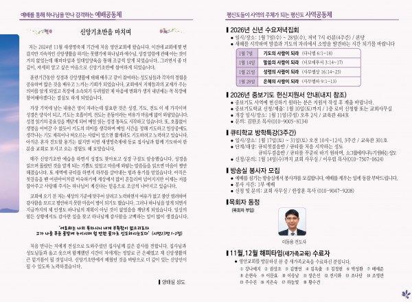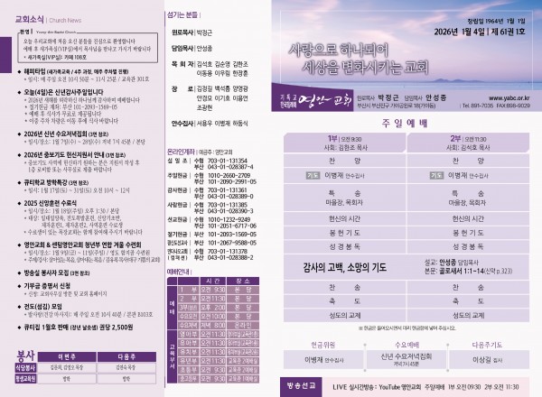 2026년 1월 4일 주보 페이지 정보 작성자 관리지기 작성일26-01-03 10:18 조회686회 댓글0건 관련링크 목록 본문 2026년 1월 4일 주보 댓글목록 등록된 댓글이 없습니다. 목록