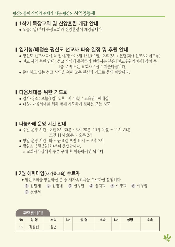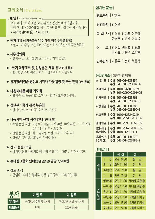 2026년 3월 1일 주보 페이지 정보 작성자 관리지기 작성일26-02-28 10:17 조회773회 댓글0건 관련링크 목록 본문 2026년 3월 1일 주보 댓글목록 등록된 댓글이 없습니다. 목록