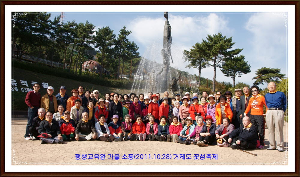 2011.10.28 평생교육원 가을소풍 페이지 정보 작성자 주선식 작성일11-10-29 00:00 조회16,905회 댓글0건 이전글 다음글 목록 본문 거제도...꽃섬 축제 댓글목록 등록된 댓글이 없습니다. 이전글 다음글 목록