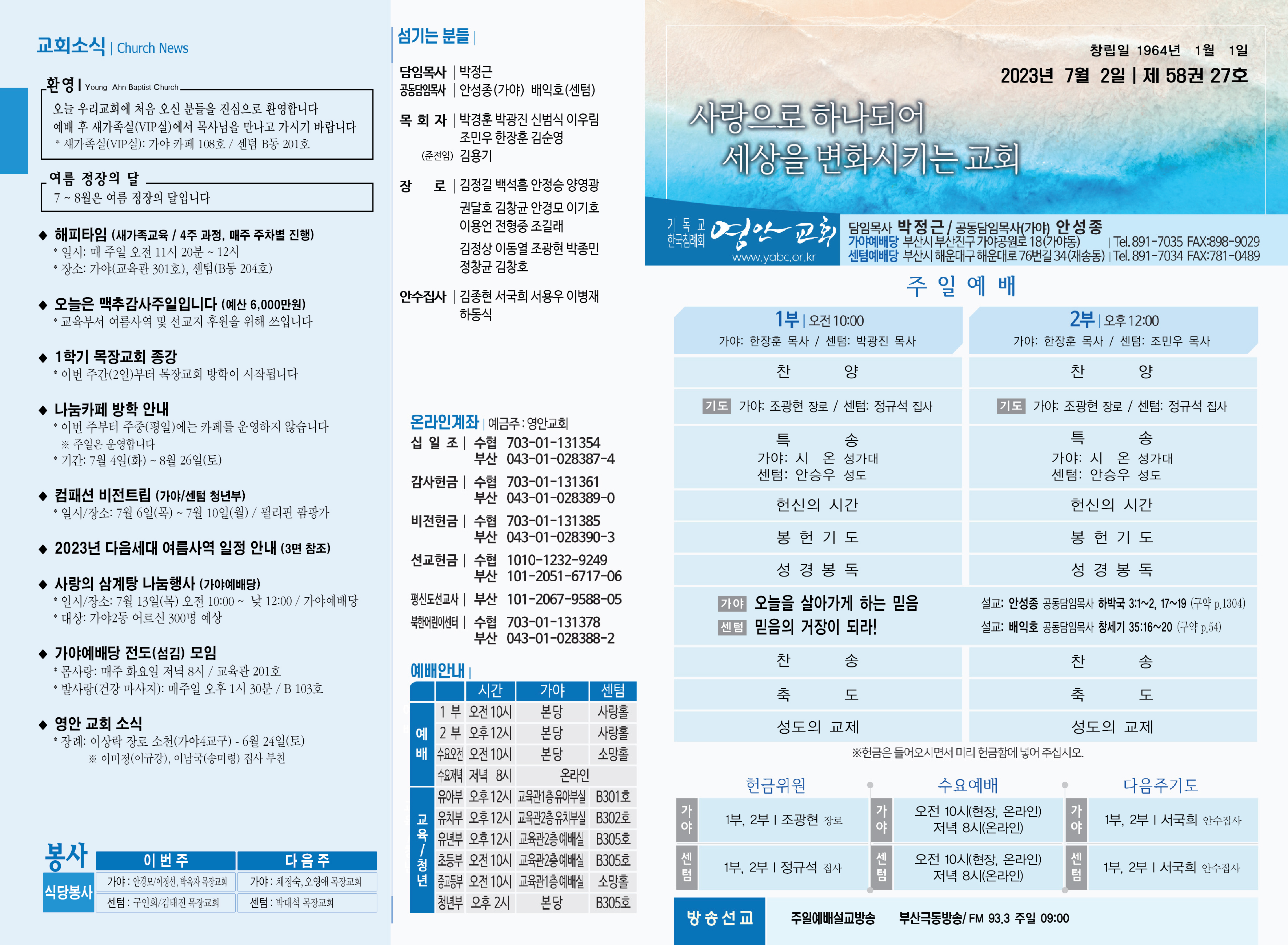 2023년 7월 2일 주보 (가야예배당) 페이지 정보 작성자 관리지기 작성일23-07-01 11:52 조회3,107회 댓글0건 관련링크 목록 본문 * 2023년 7월 2일 주보 (가야예배당) 댓글목록 등록된 댓글이 없습니다. 목록