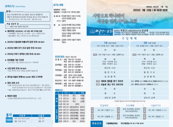 2023년 7월 23일 주보 (가야예배당) 페이지 정보 작성자 관리지기 작성일23-07-22 10:47 조회3,046회 댓글0건 관련링크 목록 본문 * 2023년 7월 23일 주보 (가야예배당) 댓글목록 등록된 댓글이 없습니다. 목록