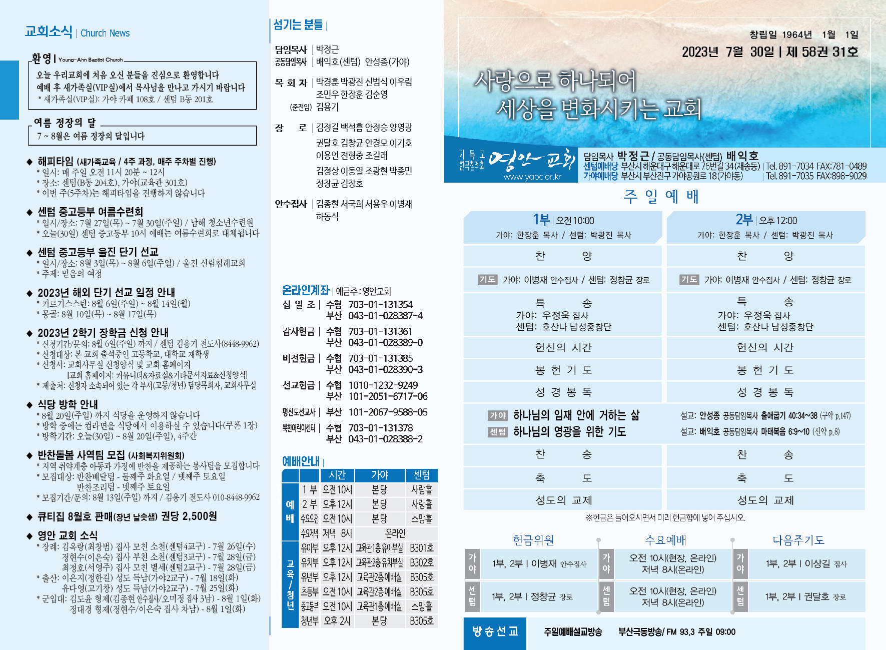 2023년 7월 30일 주보 (센텀예배당) 페이지 정보 작성자 관리지기 작성일23-07-29 10:43 조회2,942회 댓글0건 관련링크 목록 본문 2023년 7월 30일 주보 (센텀예배당) 댓글목록 등록된 댓글이 없습니다. 목록