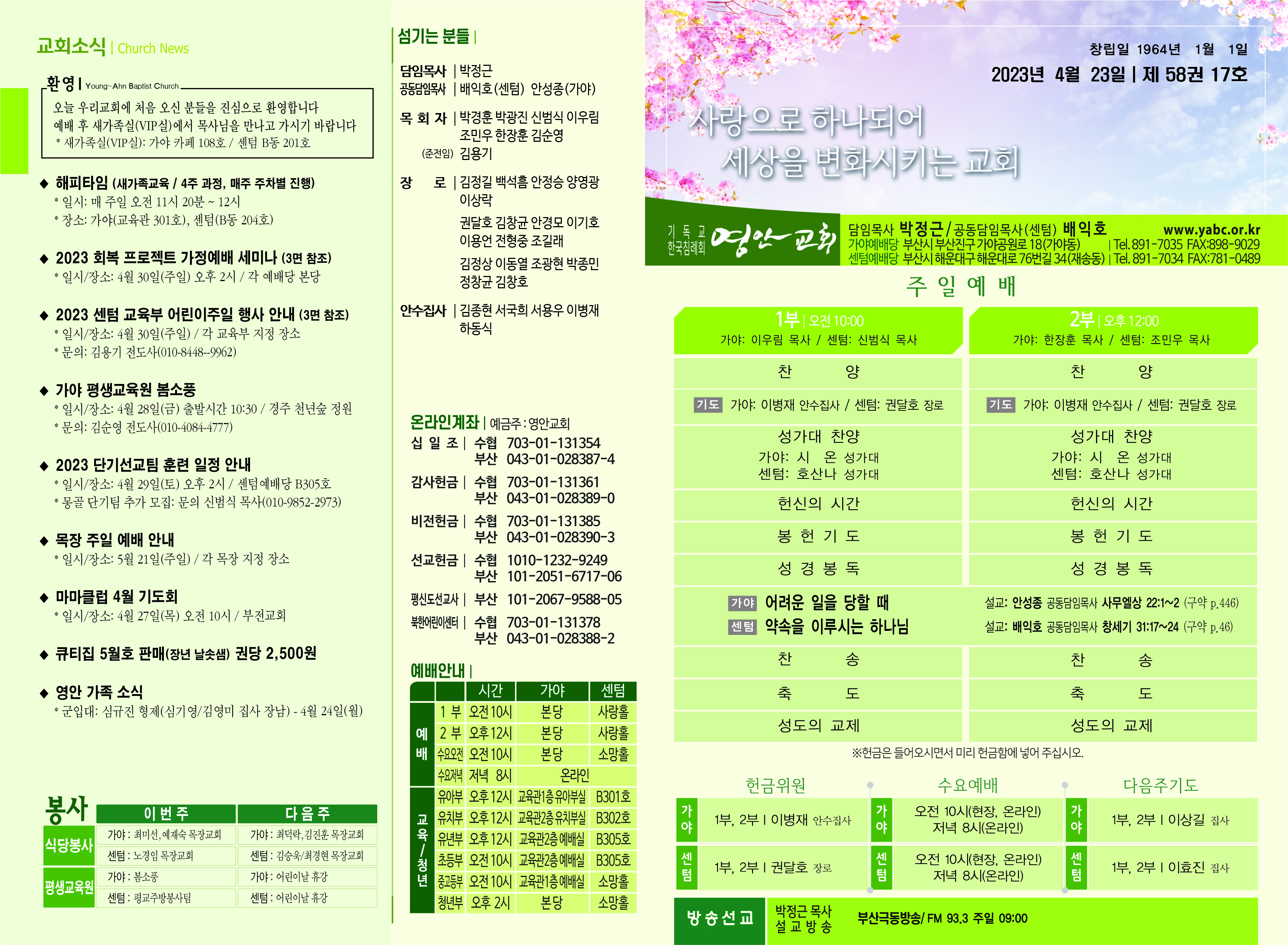 2023년 5월 21일 주보 (가야예배당)_목장주일예배
