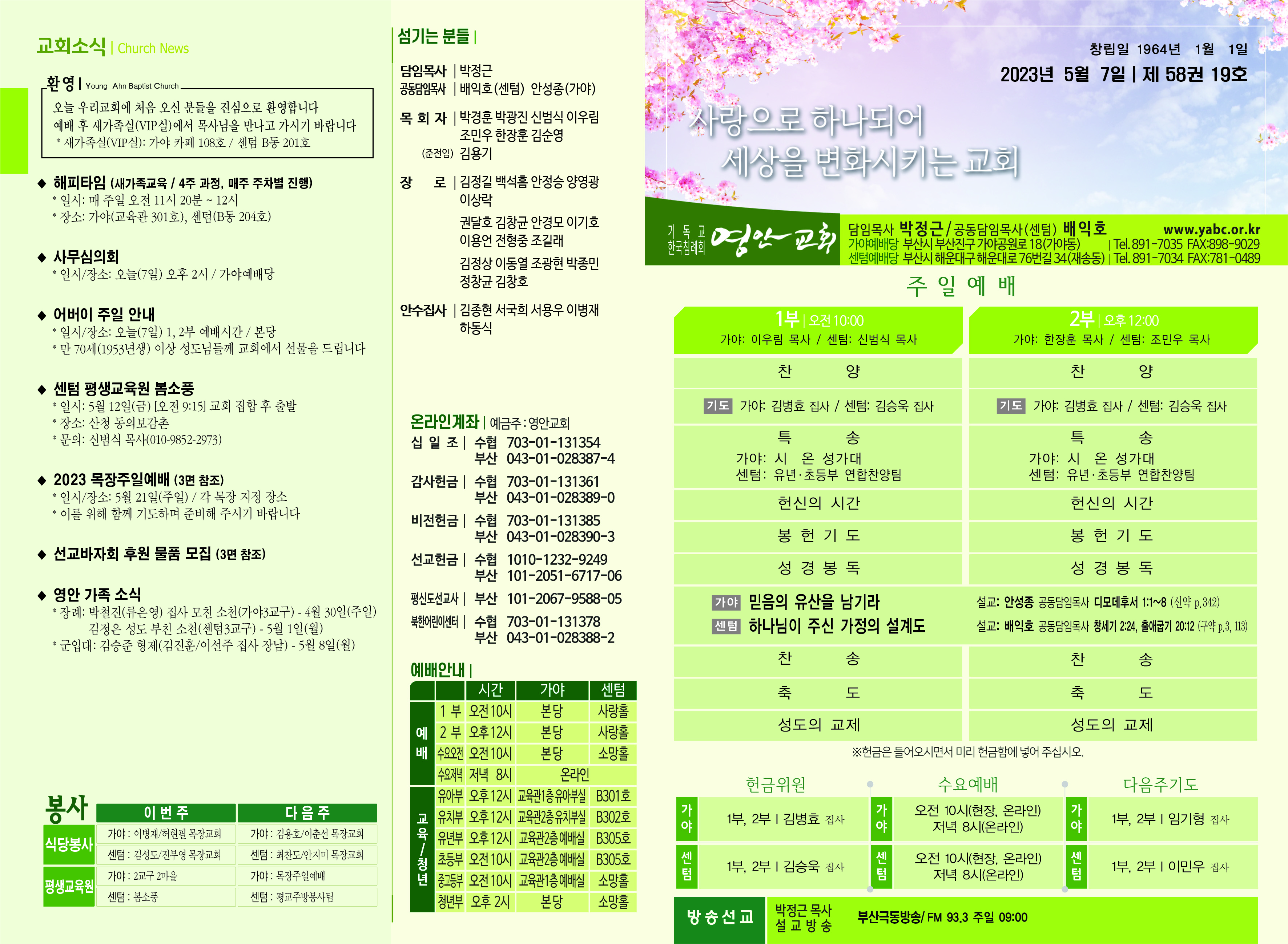 2023년 5월 21일 주보 (가야예배당)_목장주일예배