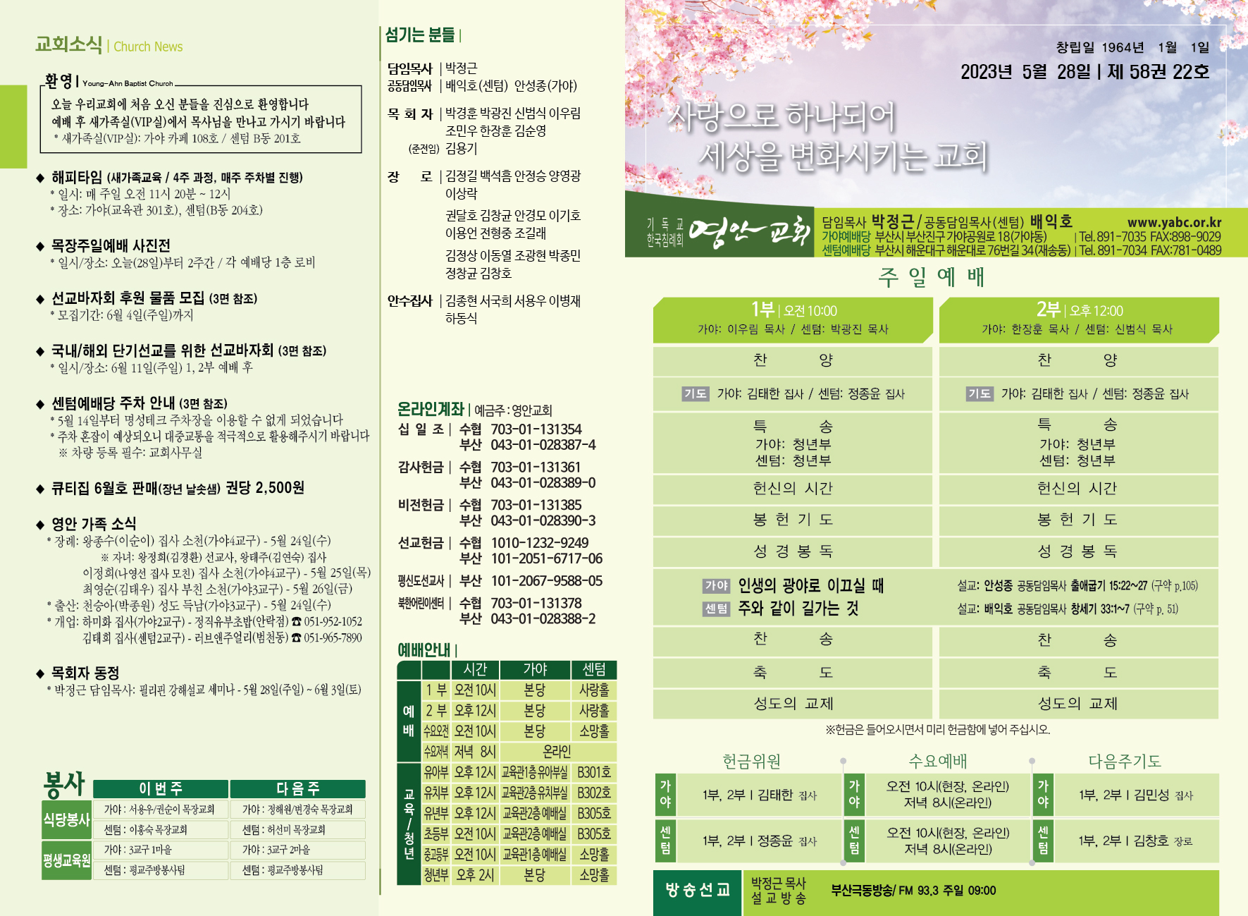 2023년 5월 21일 주보 (가야예배당)_목장주일예배