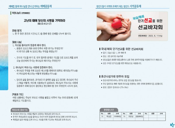 2023년 5월 21일 주보 (가야예배당)_목장주일예배