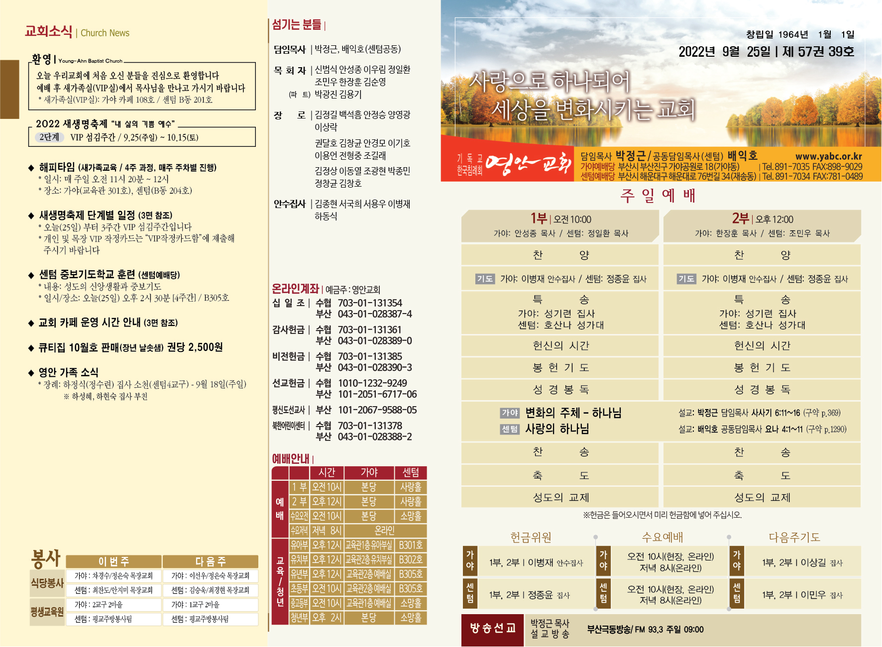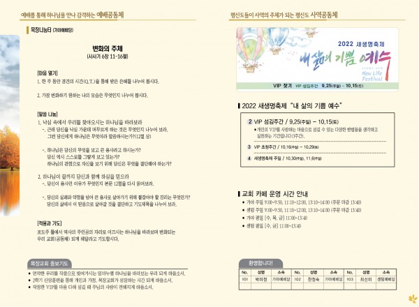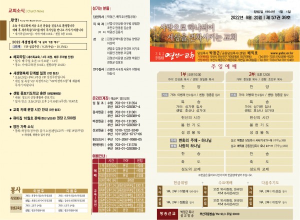 2022년 9월 25일 주보 (가야예배당) 페이지 정보 작성자 관리지기 작성일22-09-25 00:05 조회3,917회 댓글0건 관련링크 목록 본문 9월 25일 주보(가야예배당) 댓글목록 등록된 댓글이 없습니다. 목록