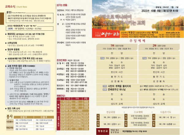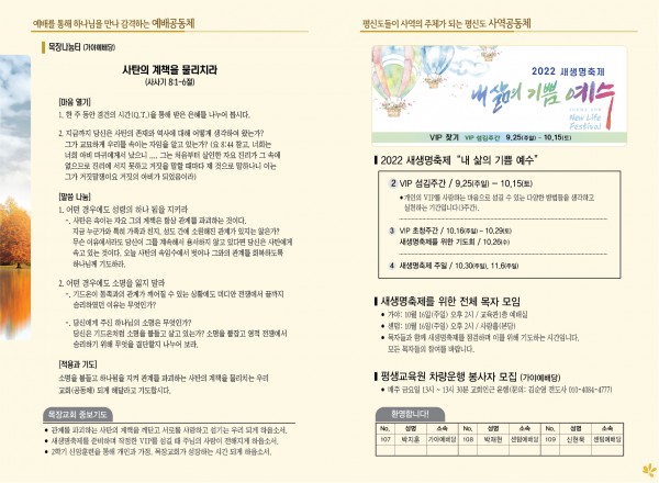 2022년 10월 9일 주보 (가야예배당) 페이지 정보 작성자 관리지기 작성일22-10-08 12:03 조회3,854회 댓글0건 관련링크 목록 본문 *2022년 10월 9일 주보 (가야예배당) 댓글목록 등록된 댓글이 없습니다. 목록