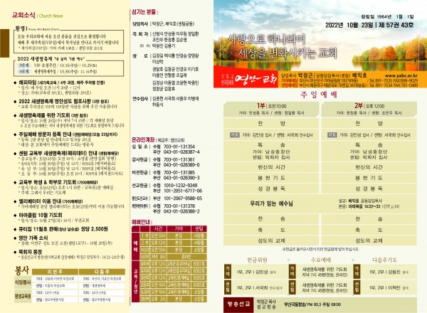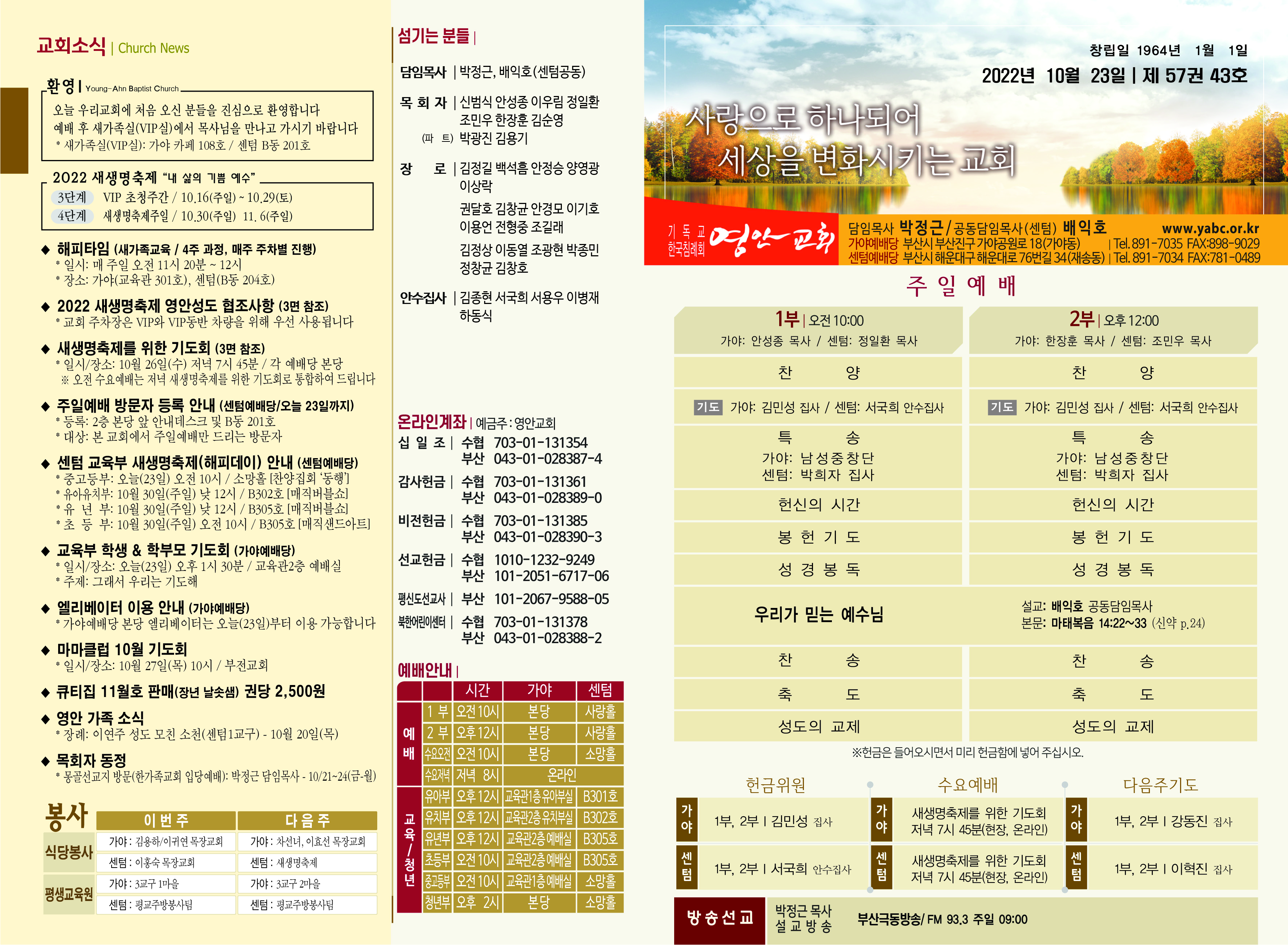 2022년 10월 23일 주보 페이지 정보 작성자 관리지기 작성일22-10-22 11:46 조회4,175회 댓글0건 관련링크 목록 본문 2022년 10월 23일 주보 댓글목록 등록된 댓글이 없습니다. 목록