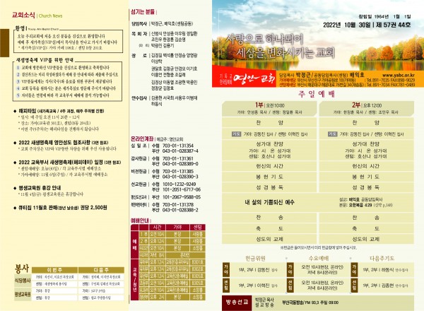 2022년 10월 30일 주보 페이지 정보 작성자 관리지기 작성일22-10-29 13:10 조회4,167회 댓글0건 관련링크 목록 본문 * 2022년 10월 30일 주보 댓글목록 등록된 댓글이 없습니다. 목록
