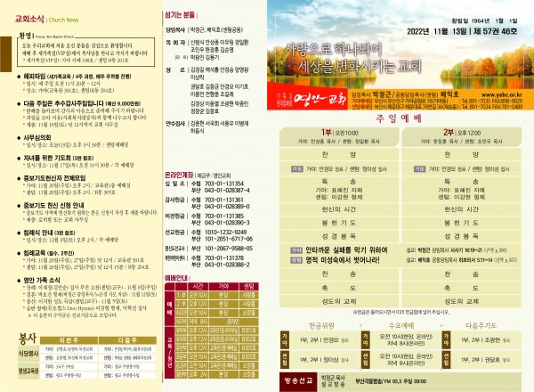 2022년 11월 13일 주보 페이지 정보 작성자 관리지기 작성일22-11-12 13:03 조회4,083회 댓글0건 관련링크 목록 본문 * 2022년 11월 13일 주보 댓글목록 등록된 댓글이 없습니다. 목록