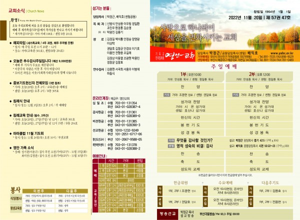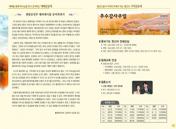 2022년 11월 20일 주보 (센텀예배당) 페이지 정보 작성자 관리지기 작성일22-11-19 10:54 조회3,604회 댓글0건 관련링크 목록 본문 2022년 11월 20일 주보 (센텀예배당) 댓글목록 등록된 댓글이 없습니다. 목록