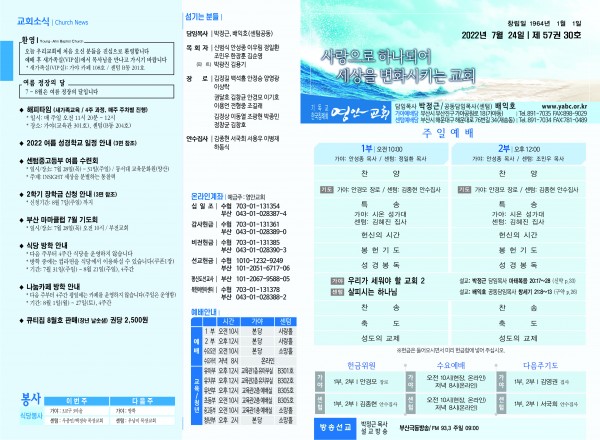 2022년 7월 24일 주보 페이지 정보 작성자 관리지기 작성일22-07-23 11:43 조회4,196회 댓글0건 관련링크 목록 본문 *2022년 7월 24일 주보 댓글목록 등록된 댓글이 없습니다. 목록