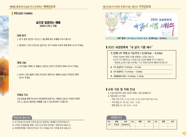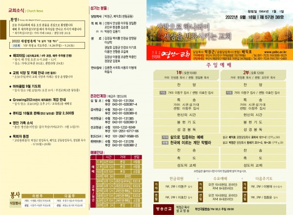 2022년 9월 18일 주보 (가야예배당) 페이지 정보 작성자 관리지기 작성일22-09-17 11:20 조회3,954회 댓글0건 관련링크 목록 본문 *2022년 9월 18일 주보 (가야예배당) 댓글목록 등록된 댓글이 없습니다. 목록