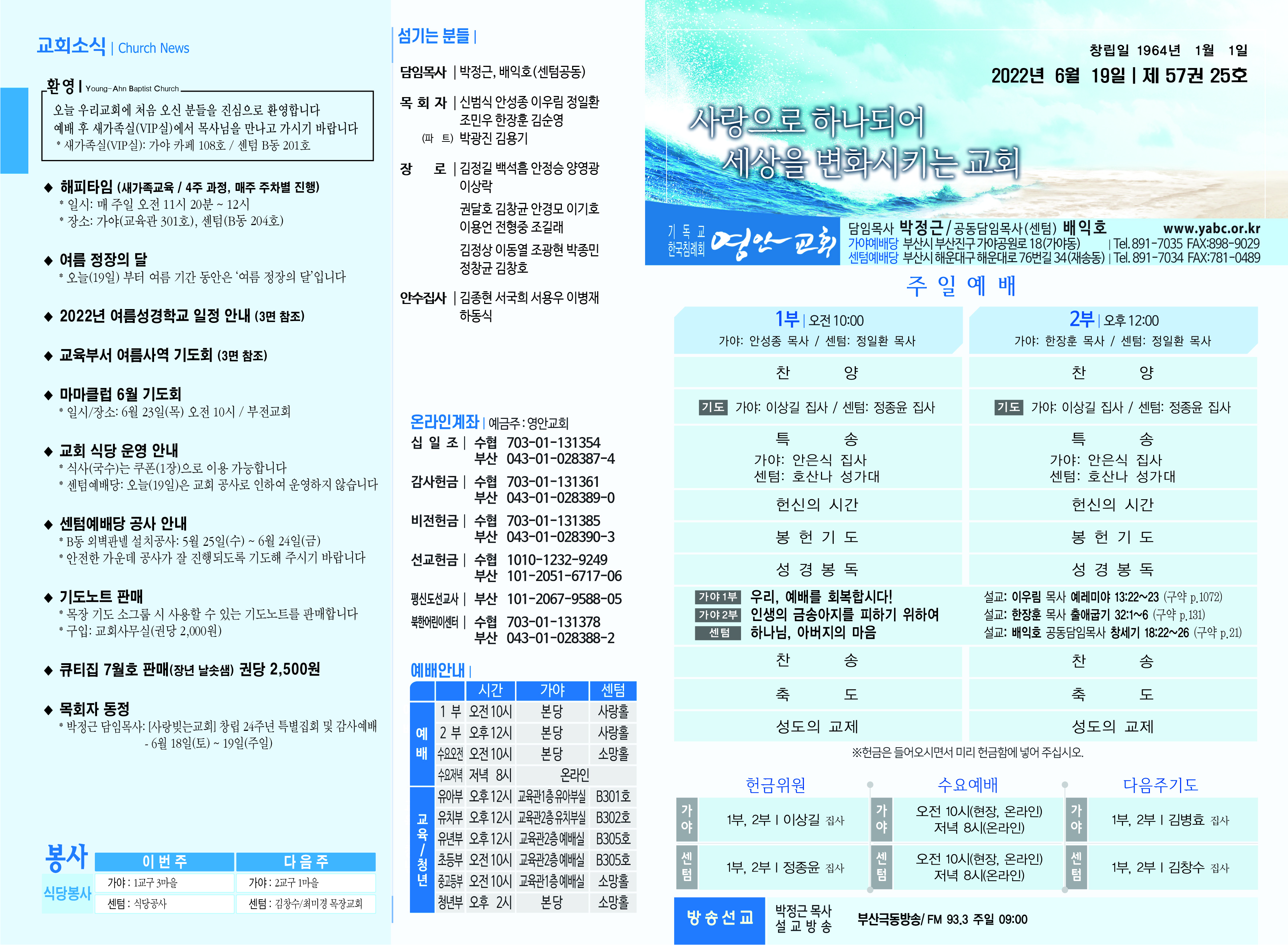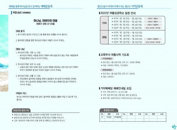2022년 6월 19일 주보 (센텀예배당) 페이지 정보 작성자 관리지기 작성일22-06-18 11:33 조회4,234회 댓글0건 관련링크 목록 본문 2022년 6월 19일 주보 (센텀예배당) 댓글목록 등록된 댓글이 없습니다. 목록