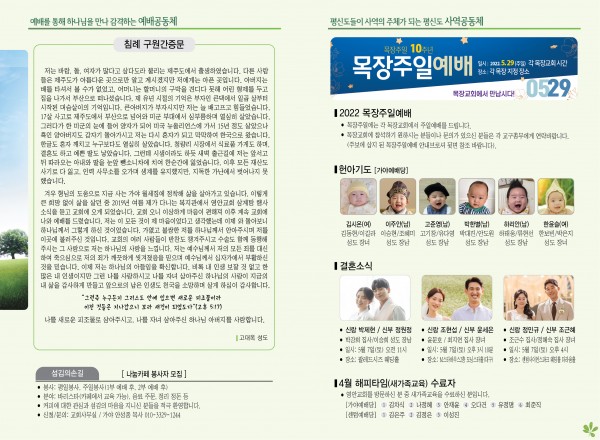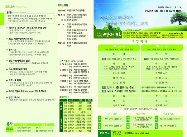 2022년 5월 1일 주보 (가야예배당) 페이지 정보 작성자 관리지기 작성일22-04-30 11:06 조회4,658회 댓글0건 관련링크 목록 본문 2022년 5월 1일 주보 (가야예배당) 댓글목록 등록된 댓글이 없습니다. 목록