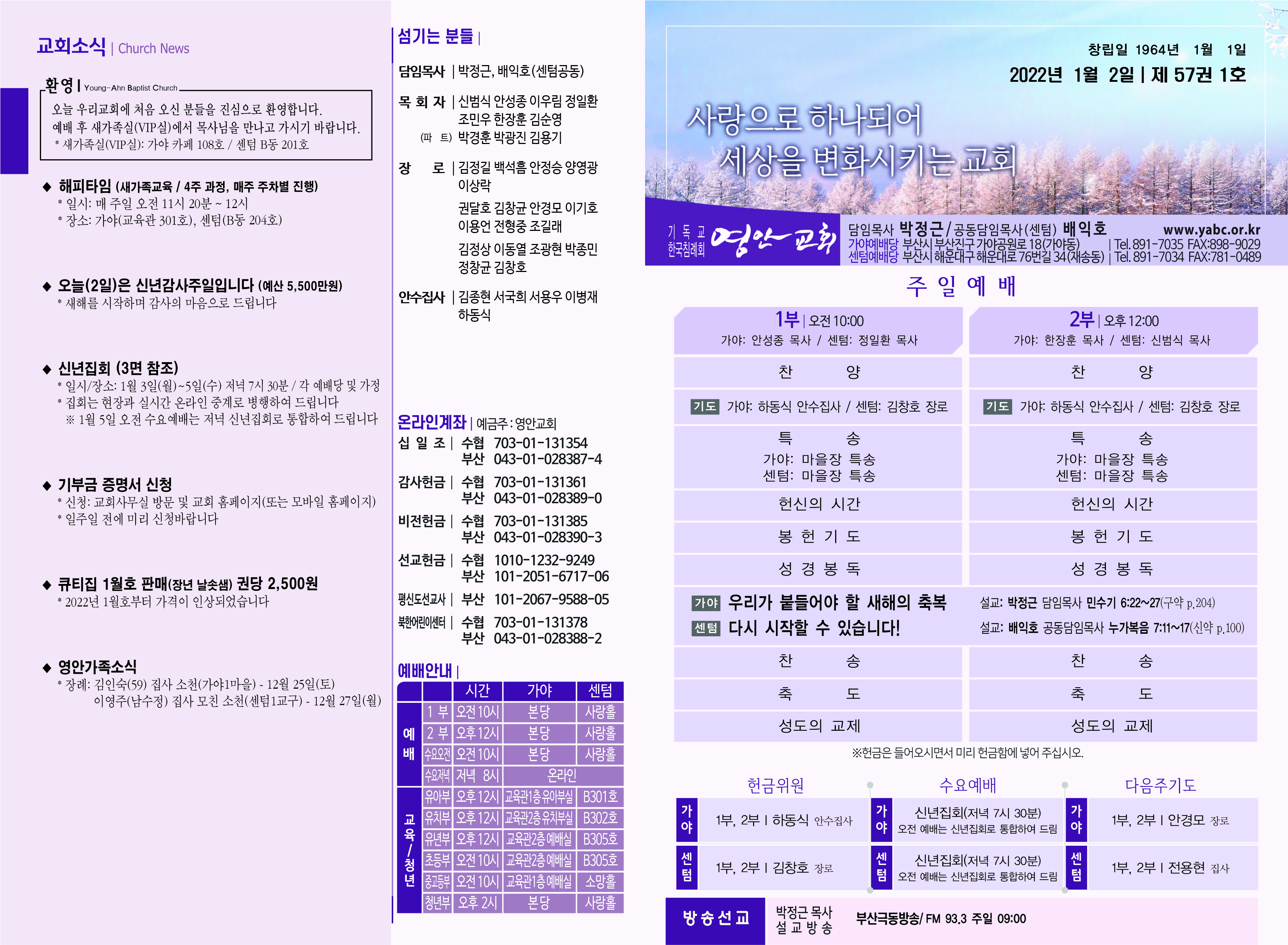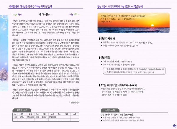 2022년 1월 2일 주보 페이지 정보 작성자 관리지기 작성일21-12-31 13:03 조회5,562회 댓글0건 관련링크 목록 본문 * 2022년 1월 2일 주보 댓글목록 등록된 댓글이 없습니다. 목록