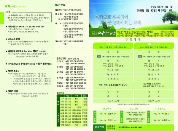 2022년 3월 13일 주보 페이지 정보 작성자 관리지기 작성일22-03-12 11:54 조회5,057회 댓글0건 관련링크 목록 본문 * 2022년 3월 13일 주보 댓글목록 등록된 댓글이 없습니다. 목록