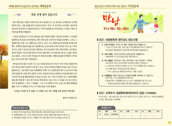 2021년 11월 14일 주보 페이지 정보 작성자 관리지기 작성일21-11-13 11:16 조회5,472회 댓글0건 관련링크 목록 본문 *2021년 11월 14일 주보 댓글목록 등록된 댓글이 없습니다. 목록