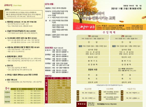 2021년 11월 21일 주보 페이지 정보 작성자 관리지기 작성일21-11-20 11:23 조회5,441회 댓글0건 관련링크 목록 본문 *2021년 11월 21일 주보 댓글목록 등록된 댓글이 없습니다. 목록