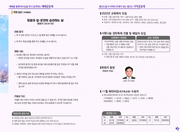 2021년 12월 5일 주보 (가야예배당) 페이지 정보 작성자 관리지기 작성일21-12-04 11:27 조회5,039회 댓글0건 관련링크 목록 본문 *2021년 12월 5일 주보 (가야예배당) 댓글목록 등록된 댓글이 없습니다. 목록