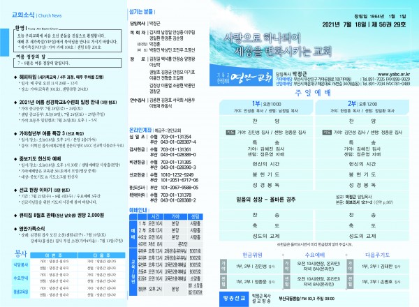 2021년 7월 18일 주보 페이지 정보 작성자 관리지기 작성일21-07-17 11:15 조회5,822회 댓글0건 관련링크 목록 본문 *2021년 7월 18일 주보 댓글목록 등록된 댓글이 없습니다. 목록