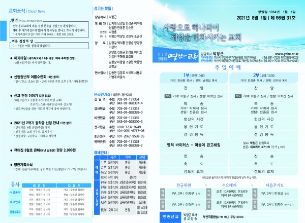 2021년 8월 1일 주보 페이지 정보 작성자 관리지기 작성일21-07-31 11:52 조회5,745회 댓글0건 관련링크 목록 본문 2021년 8월 1일 주보 댓글목록 등록된 댓글이 없습니다. 목록