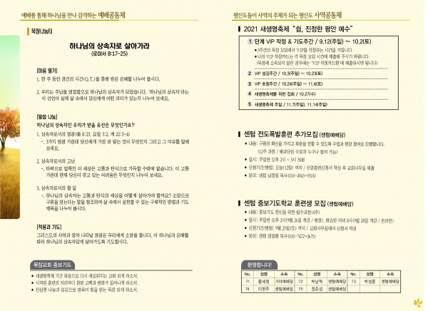 2021년 9월 12일 주보 페이지 정보 작성자 관리지기 작성일21-09-11 11:01 조회5,602회 댓글0건 관련링크 목록 본문 * 2021년 9월 12일 주보 댓글목록 등록된 댓글이 없습니다. 목록