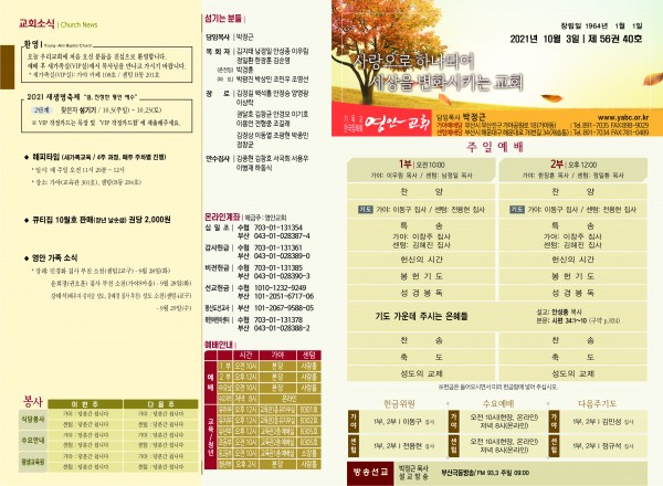 2021년 10월 3일 주보 페이지 정보 작성자 관리지기 작성일21-10-02 11:41 조회5,666회 댓글0건 관련링크 목록 본문 2021년 10월 3일 주보 댓글목록 등록된 댓글이 없습니다. 목록