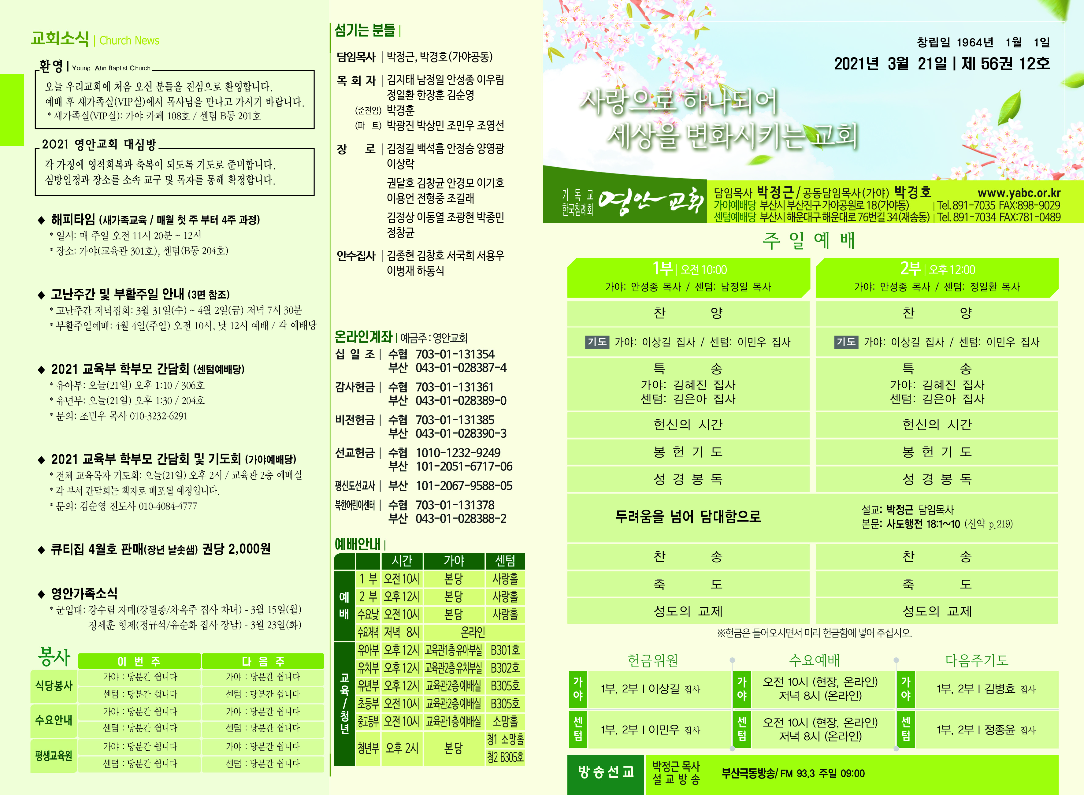 2021년 3월 21일 주보 페이지 정보 작성자 관리지기 작성일21-03-20 12:50 조회6,606회 댓글0건 관련링크 목록 본문 *2021년 3월 21일 주보 댓글목록 등록된 댓글이 없습니다. 목록