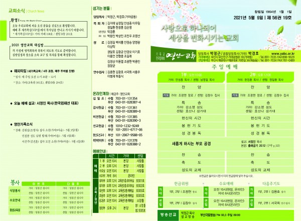 2021년 5월 9일 주보 페이지 정보 작성자 관리지기 작성일21-05-08 11:26 조회5,983회 댓글0건 관련링크 목록 본문 *2021년 5월 9일 주보 댓글목록 등록된 댓글이 없습니다. 목록