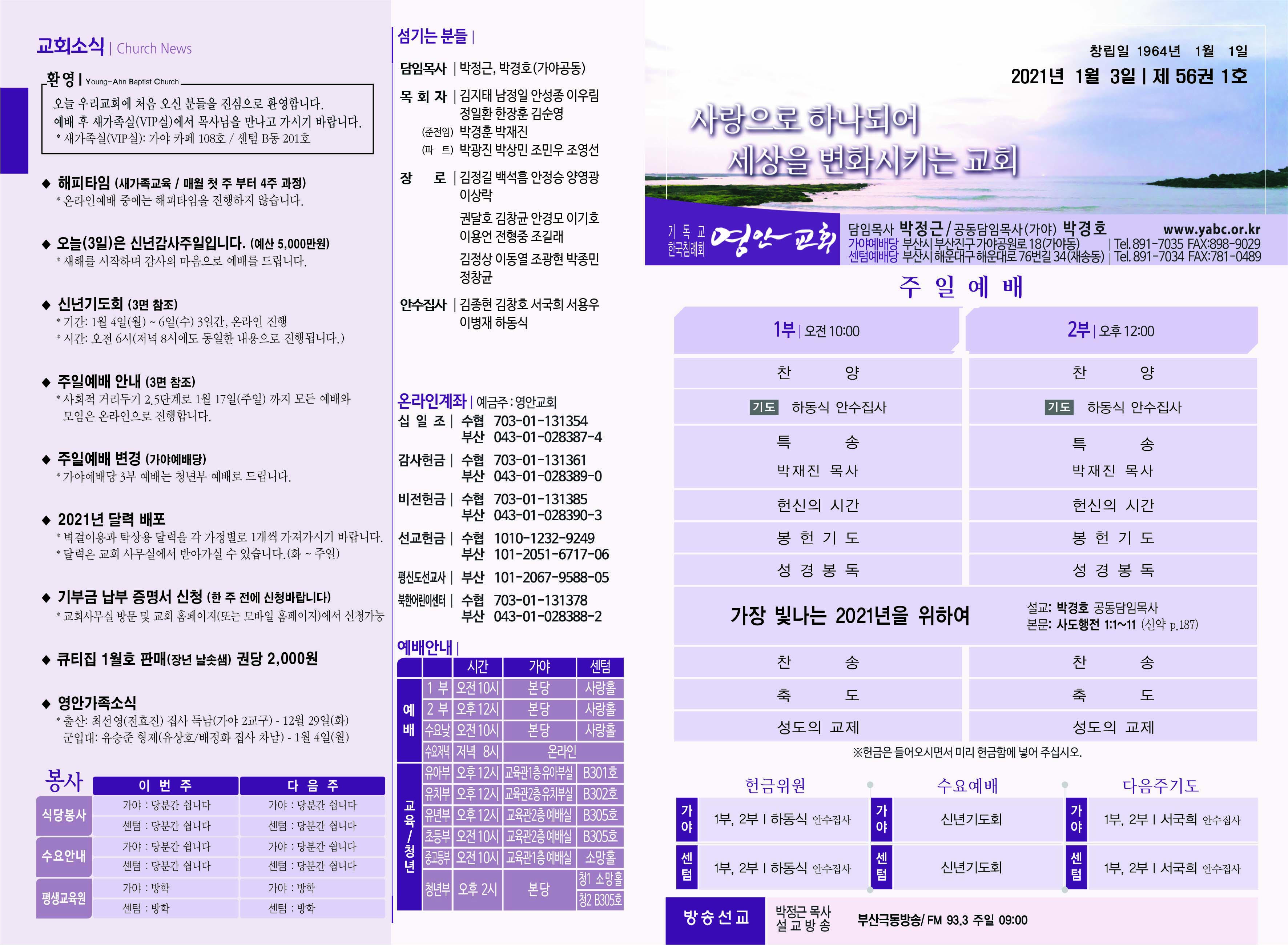 2021년 1월 3일 주보 페이지 정보 작성자 관리지기 작성일21-01-02 11:52 조회6,826회 댓글0건 관련링크 목록 본문 2021년 1월 3일 주보 댓글목록 등록된 댓글이 없습니다. 목록