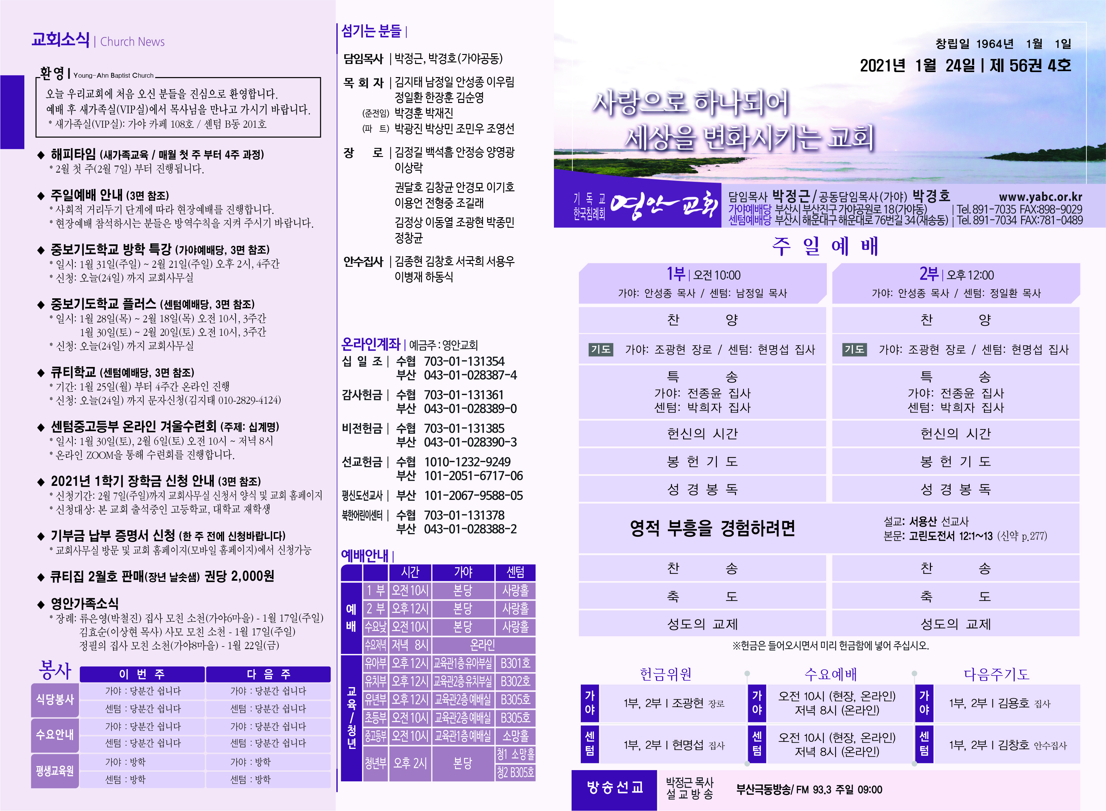 2021년 1월 24일 주보 페이지 정보 작성자 관리지기 작성일21-01-23 11:29 조회6,480회 댓글0건 관련링크 목록 본문 2021년 1월 24일 주보 댓글목록 등록된 댓글이 없습니다. 목록