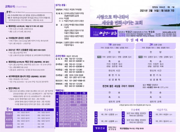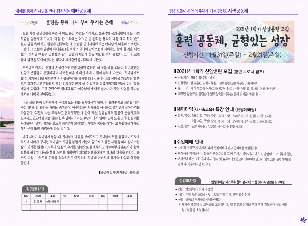 2021년 2월 14일 주보 페이지 정보 작성자 관리지기 작성일21-02-12 22:46 조회6,574회 댓글0건 관련링크 목록 본문 2021년 2월 14일 주보 댓글목록 등록된 댓글이 없습니다. 목록