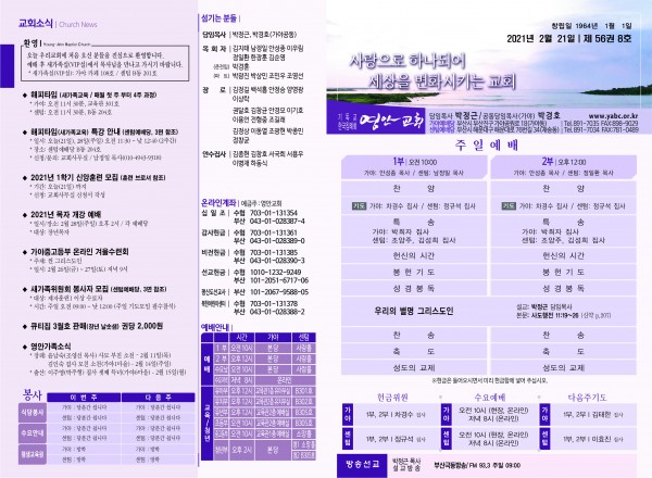 2021년 2월 21일 주보 페이지 정보 작성자 관리지기 작성일21-02-20 12:03 조회6,572회 댓글0건 관련링크 목록 본문 2021년 2월 21일 주보 댓글목록 등록된 댓글이 없습니다. 목록