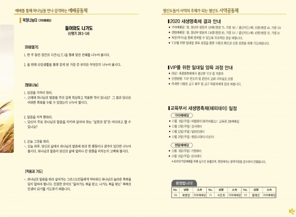 2020년 11월 8일 주보(가야예배당) 페이지 정보 작성자 관리지기 작성일20-11-07 11:32 조회6,627회 댓글0건 관련링크 목록 본문 2020년 11월 8일 주보(가야예배당) 댓글목록 등록된 댓글이 없습니다. 목록