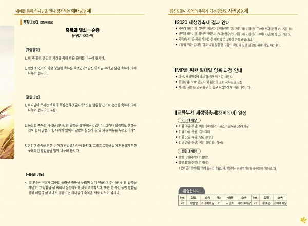 2020년 11월 8일 주보(센텀예배당) 페이지 정보 작성자 관리지기 작성일20-11-07 11:33 조회6,609회 댓글0건 관련링크 목록 본문 2020년 11월 8일 주보(센텀예배당) 댓글목록 등록된 댓글이 없습니다. 목록