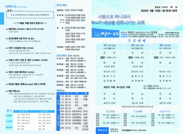 2020년 8월 23일 주보 페이지 정보 작성자 관리지기 작성일20-08-22 12:04 조회7,522회 댓글0건 관련링크 목록 본문 2020년 8월 23일 주보 댓글목록 등록된 댓글이 없습니다. 목록