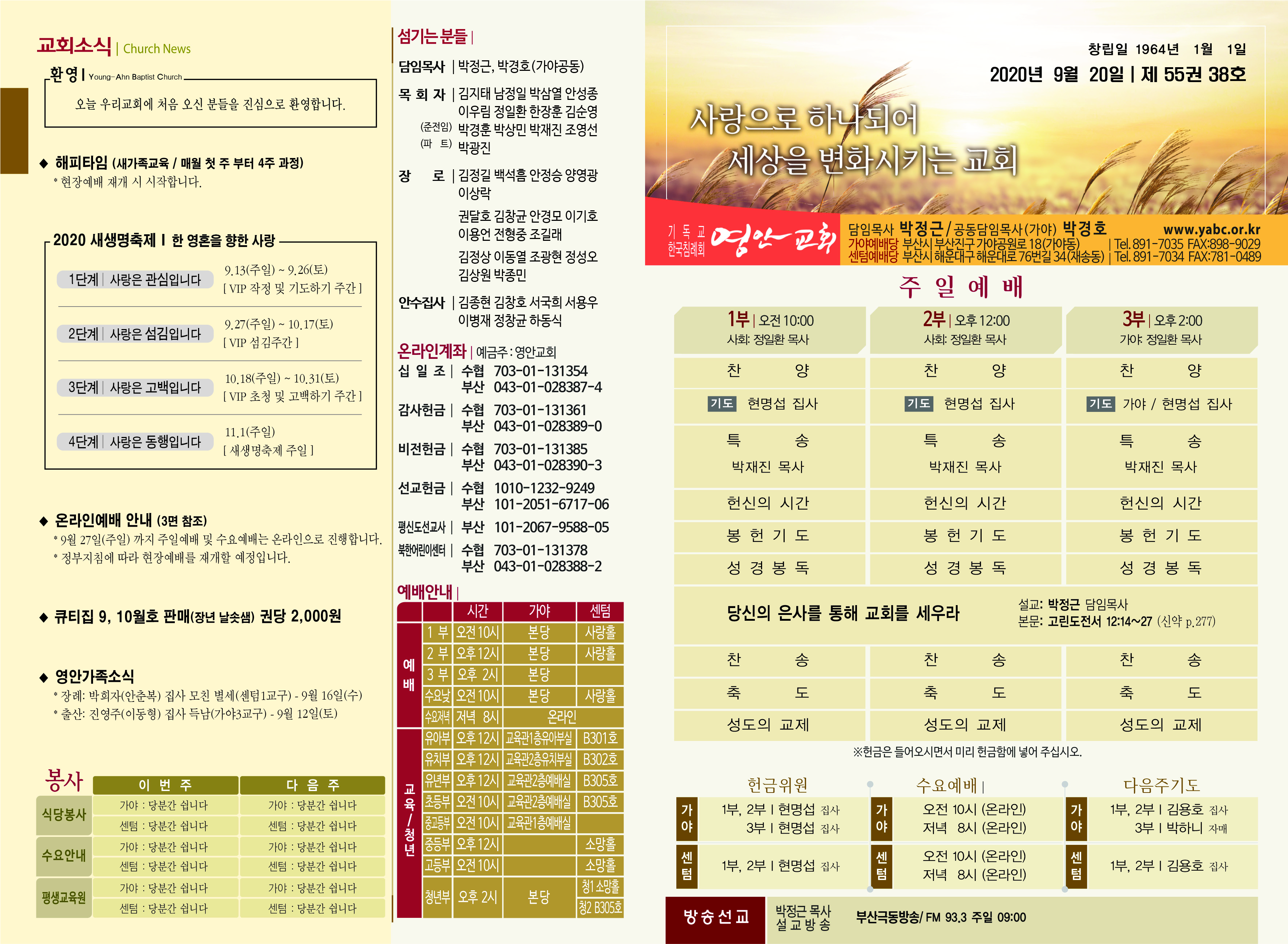 2020년 9월 20일 주보 페이지 정보 작성자 관리지기 작성일20-09-19 11:08 조회7,027회 댓글0건 관련링크 목록 본문 2020년 9월 20일 주보 댓글목록 등록된 댓글이 없습니다. 목록