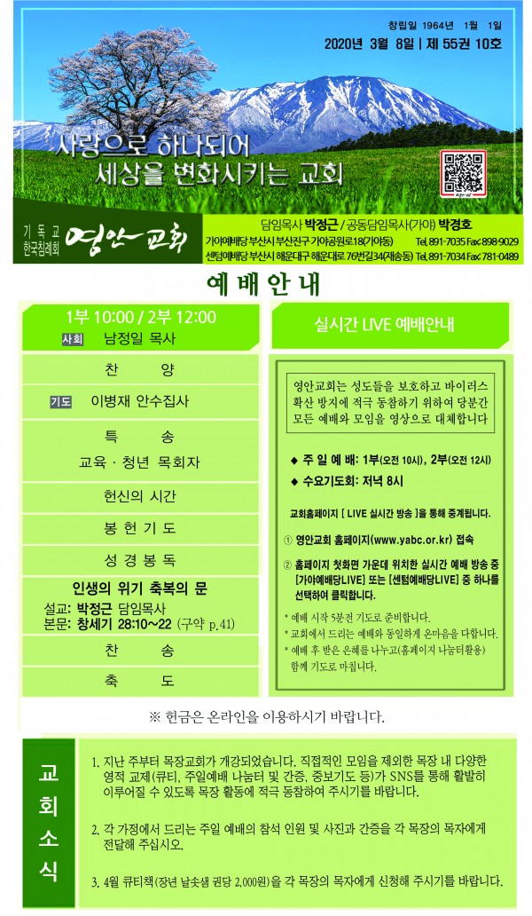2020년 3월 8일 주보 페이지 정보 작성자 관리지기 작성일20-03-07 12:01 조회8,233회 댓글0건 관련링크 목록 본문 2020년 3월 8일 주보 댓글목록 등록된 댓글이 없습니다. 목록
