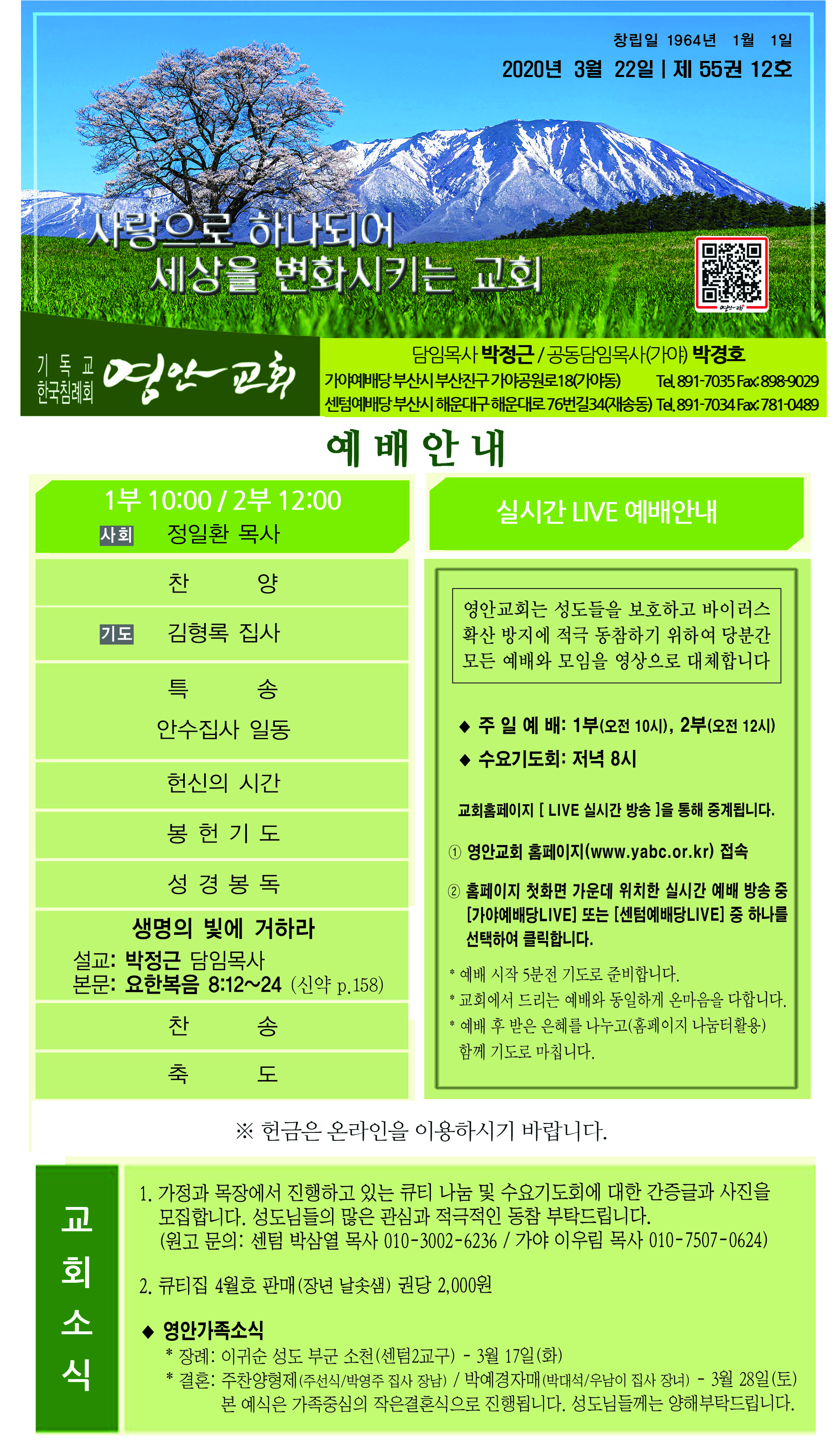 2020년 3월 22일 주보 페이지 정보 작성자 관리지기 작성일20-03-21 12:04 조회7,863회 댓글0건 관련링크 목록 본문 2020년 3월 22일 주보 댓글목록 등록된 댓글이 없습니다. 목록