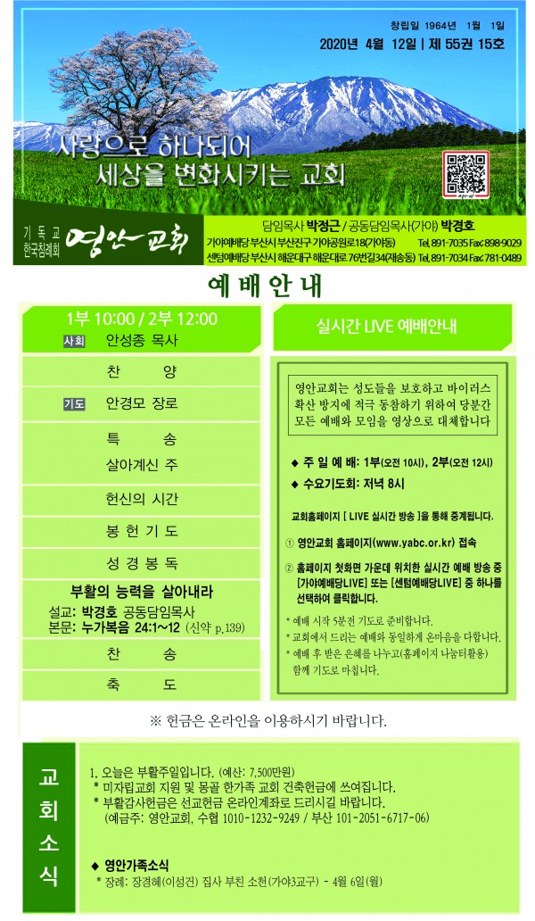 2020년 4월 12일 주보 페이지 정보 작성자 관리지기 작성일20-04-11 11:47 조회7,644회 댓글0건 관련링크 목록 본문 2020년 4월 12일 주보 댓글목록 등록된 댓글이 없습니다. 목록