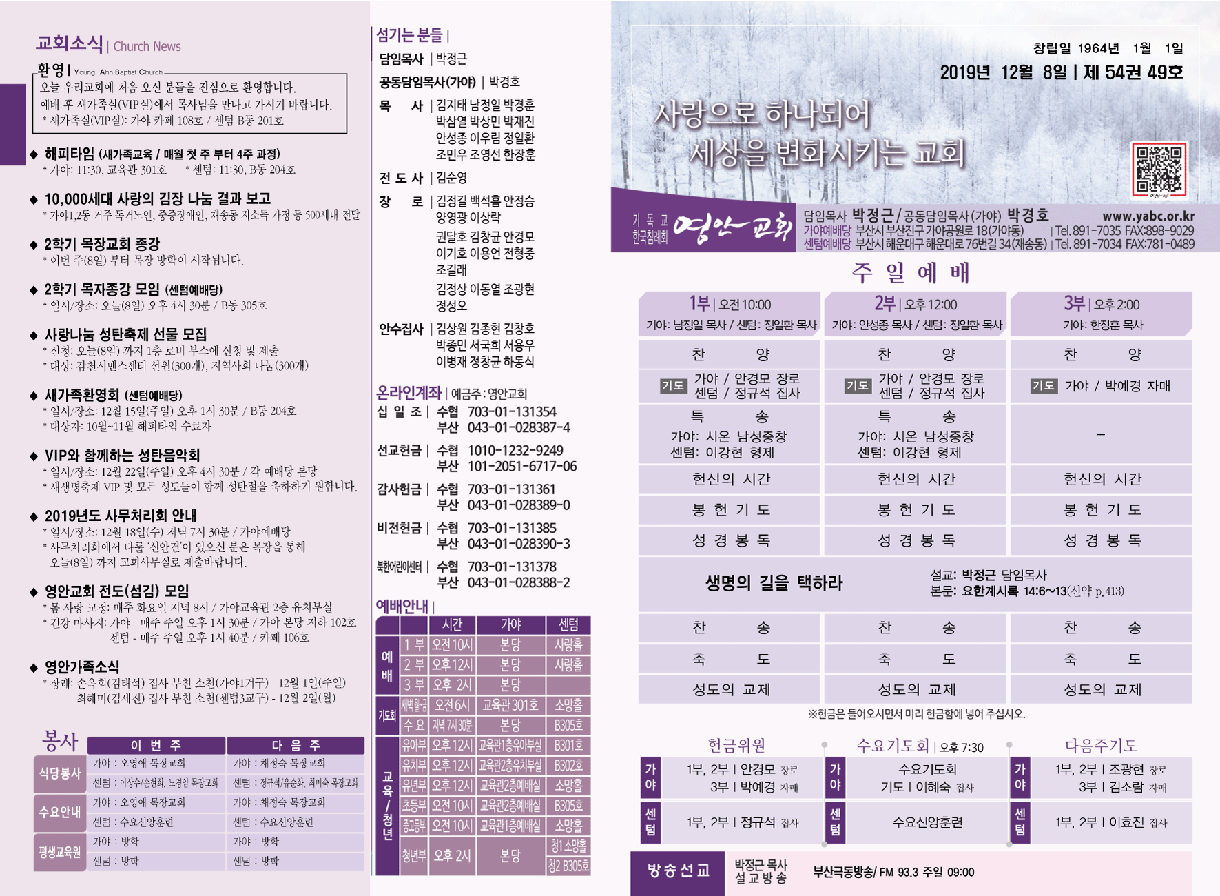 2019년 12월 8일 주보 페이지 정보 작성자 관리지기 작성일19-12-07 11:59 조회8,085회 댓글0건 관련링크 목록 본문 [2019년 12월 8일 주보] 댓글목록 등록된 댓글이 없습니다. 목록