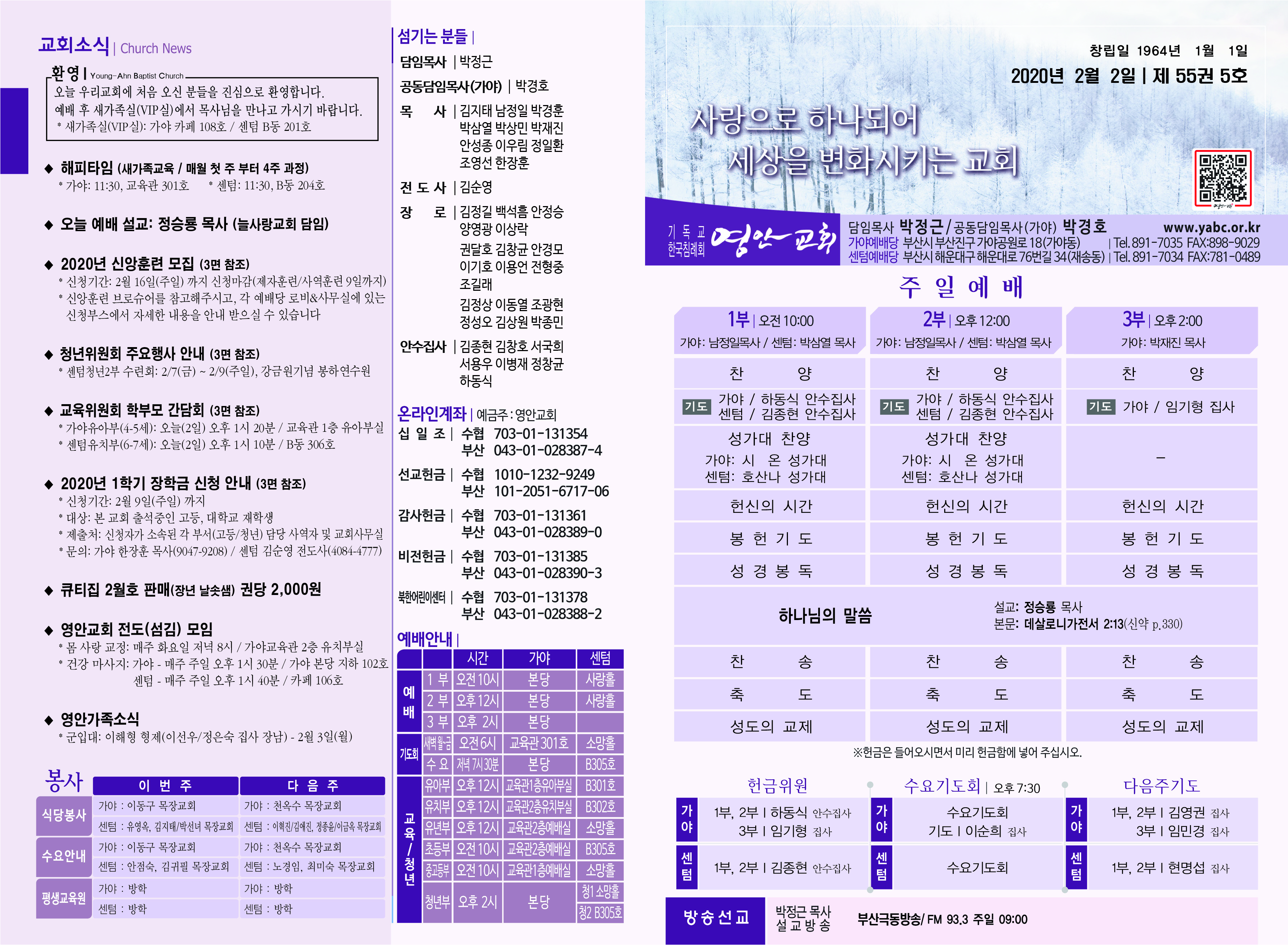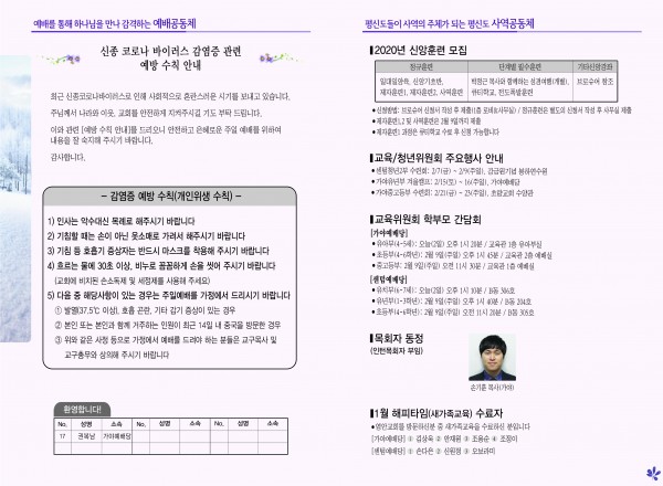 2020년 2월 2일 주보 페이지 정보 작성자 관리지기 작성일20-02-01 11:49 조회7,580회 댓글0건 관련링크 목록 본문 2020년 2월 2일 주보 댓글목록 등록된 댓글이 없습니다. 목록