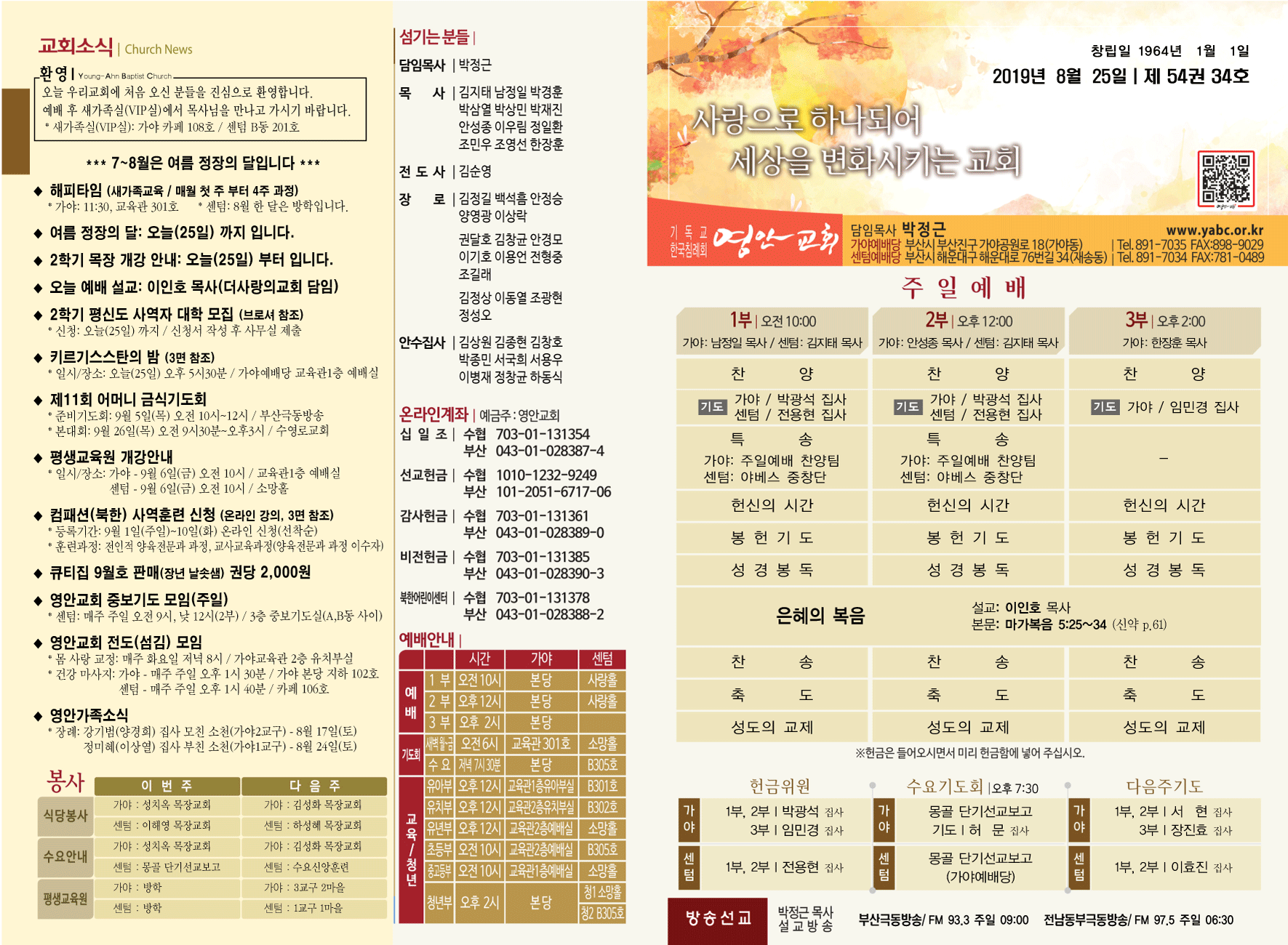 2019년 8월 25일 주보 페이지 정보 작성자 관리지기 작성일19-08-24 11:47 조회8,413회 댓글0건 관련링크 목록 본문 [2019년 8월 25일 주보] 댓글목록 등록된 댓글이 없습니다. 목록