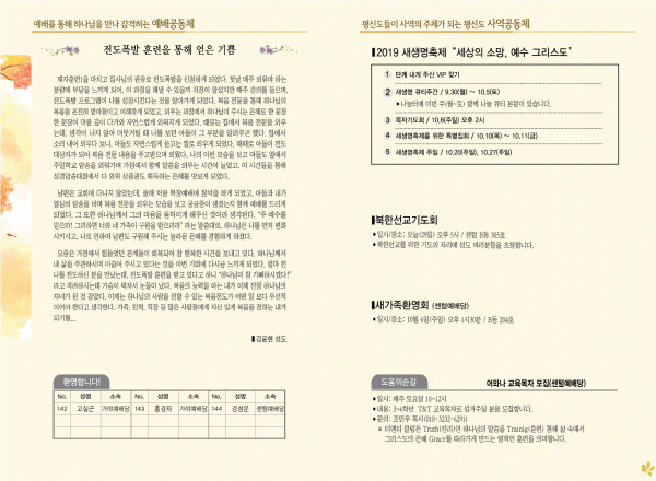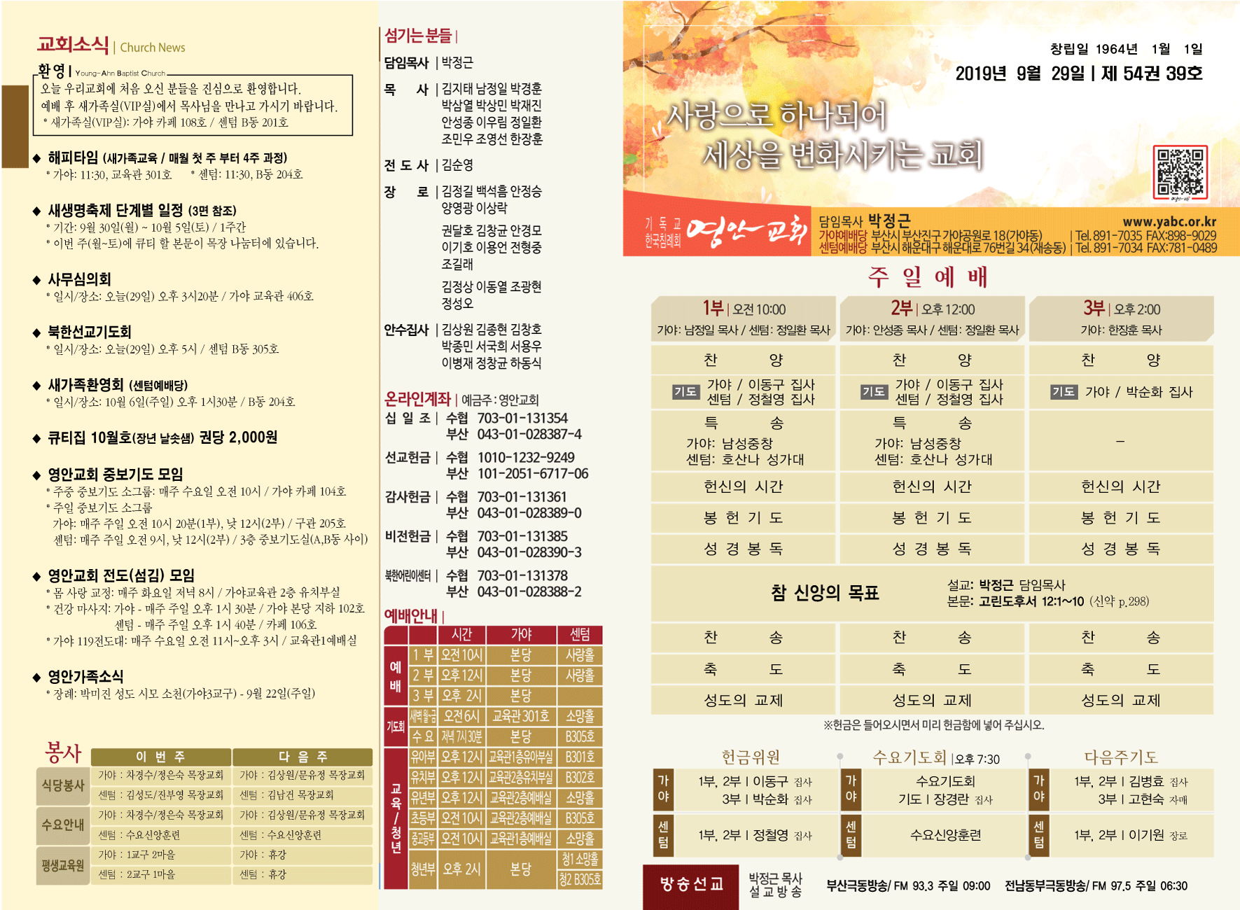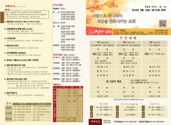 2019년 9월 29일 주보 페이지 정보 작성자 관리지기 작성일19-09-28 11:23 조회7,923회 댓글0건 관련링크 목록 본문 [2019년 9월 29일 주보] 댓글목록 등록된 댓글이 없습니다. 목록